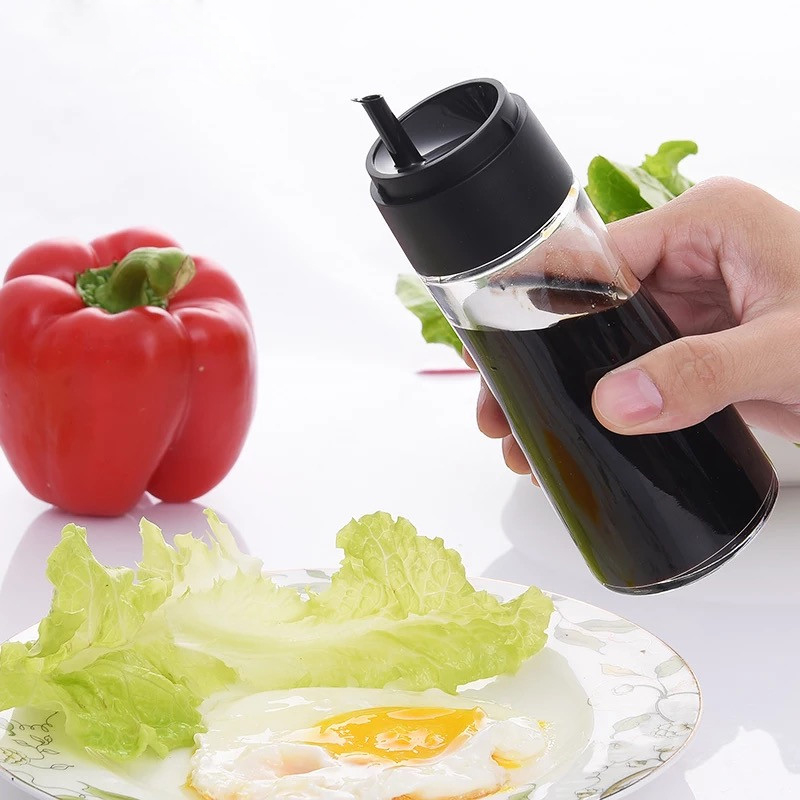 Olive Dispenser Oil Bottle / Air Controlled for Pouring Vinegar Sauce Storage Cruet Liquid Container for Kitchen with PP Lid